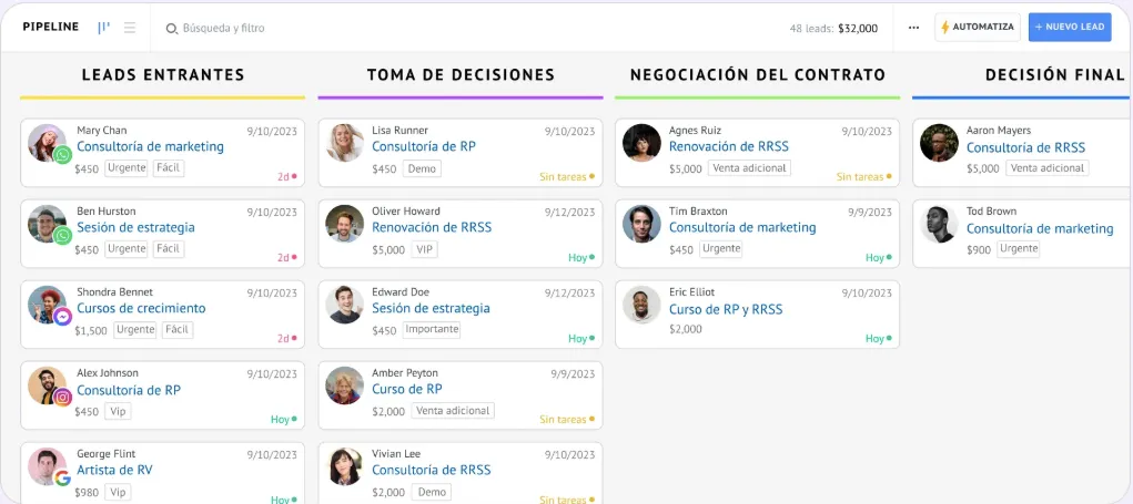 • Organiza tus leads en un pipeline