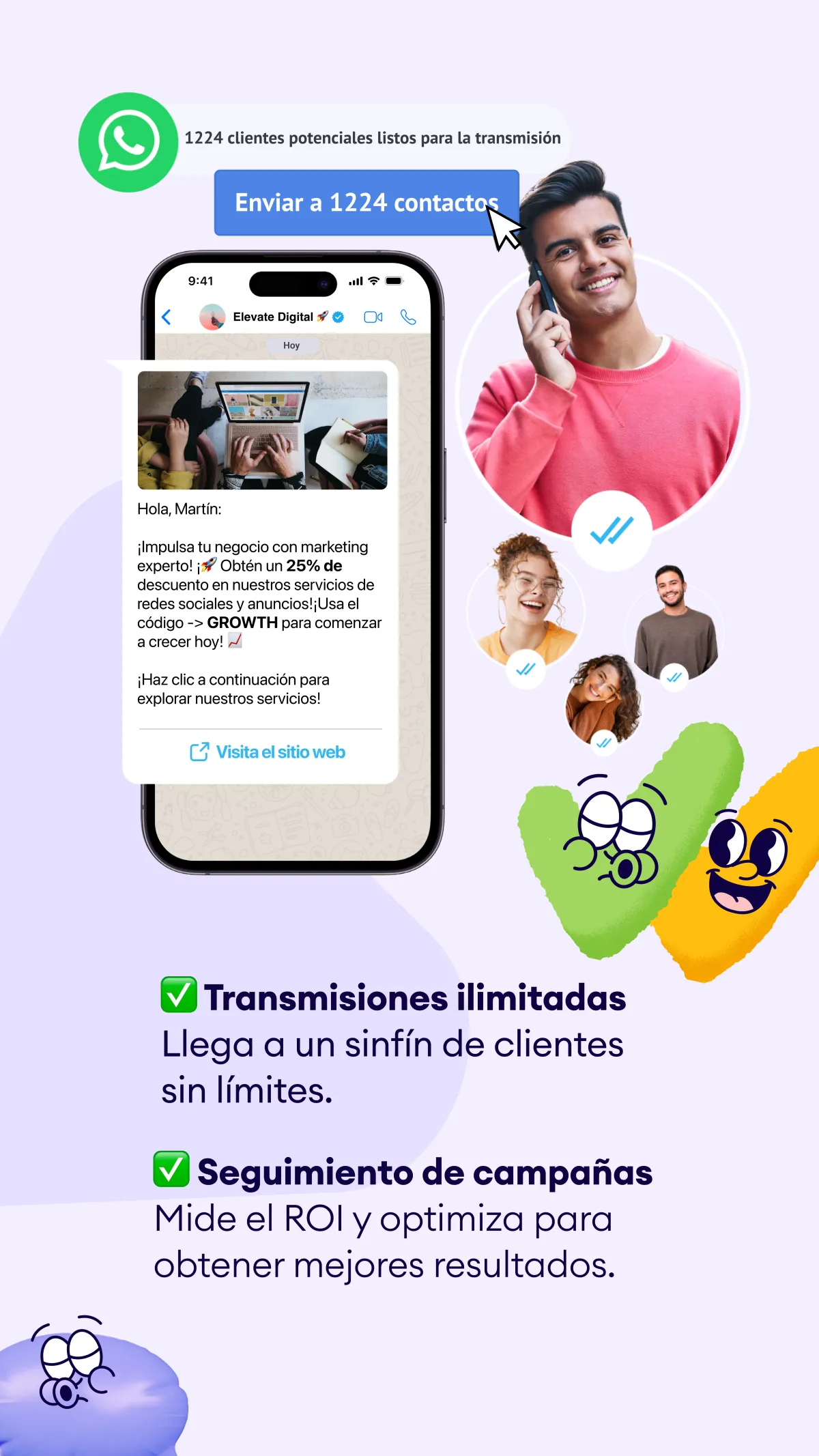 • Establece objetivos y mide el rendimiento de WhatsApp